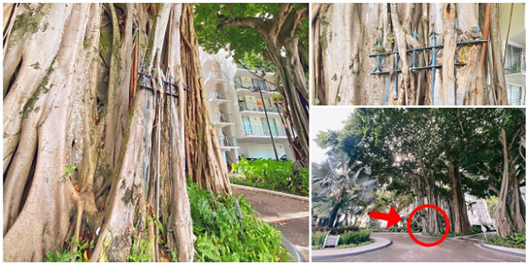 ​The iron fence embedded into Nirvana’s gorgeous front-entrance Banyan trees on NE 63rd Street was once part of the large 45-acre plantation known as the ‘Tee House Plantation’